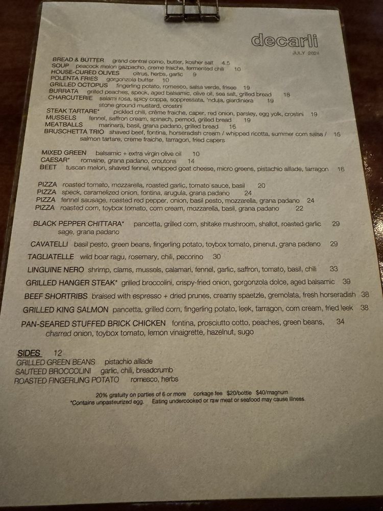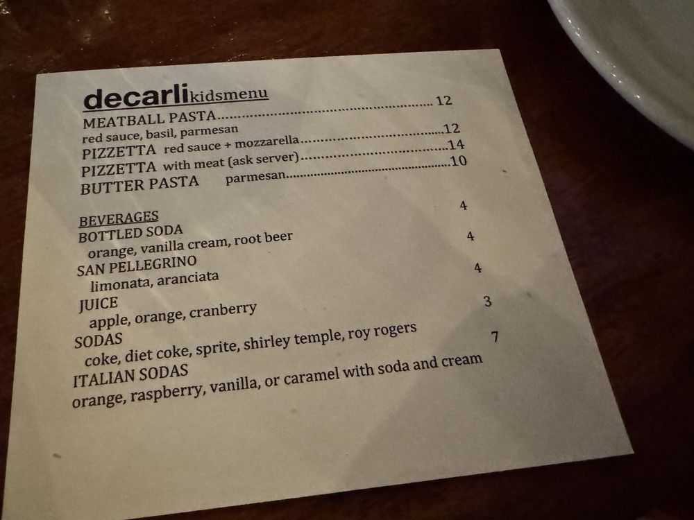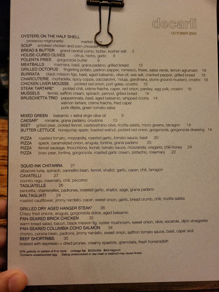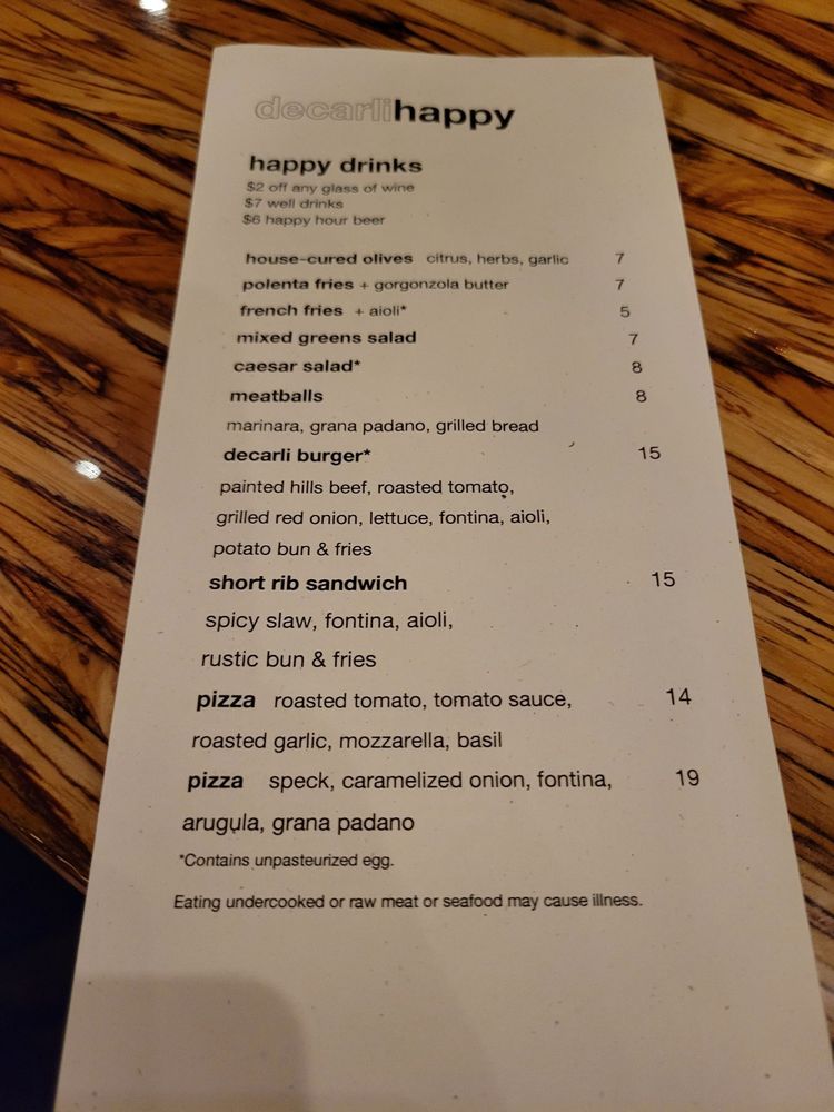 Decarli Menu